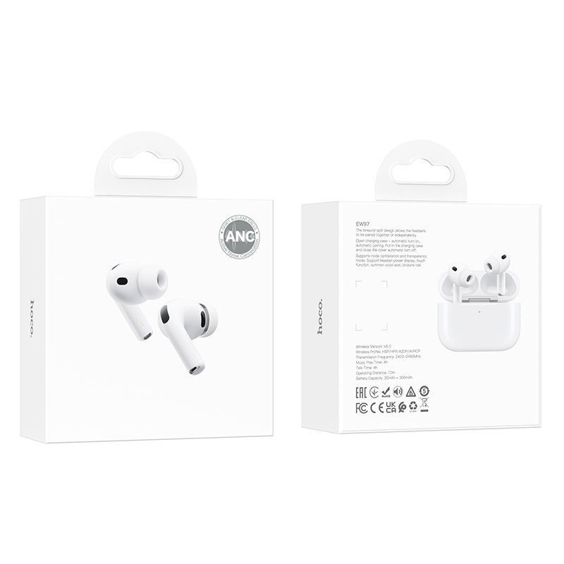 Оставьте шум города позади и погрузитесь в любимую музыку. Hoco EW97 — это воплощение элегантности и современных технологий в формате TWS. Благодаря эргономичному дизайну и безупречно белому исполнению, они станут идеальным аксессуаром для любого образа.