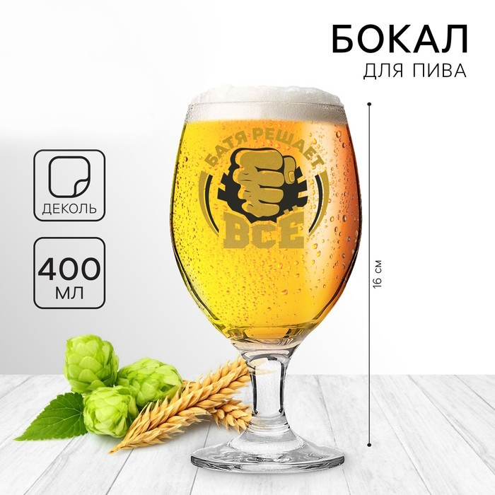 Бокал для пива с надписью «Батя решает все» (400 мл)