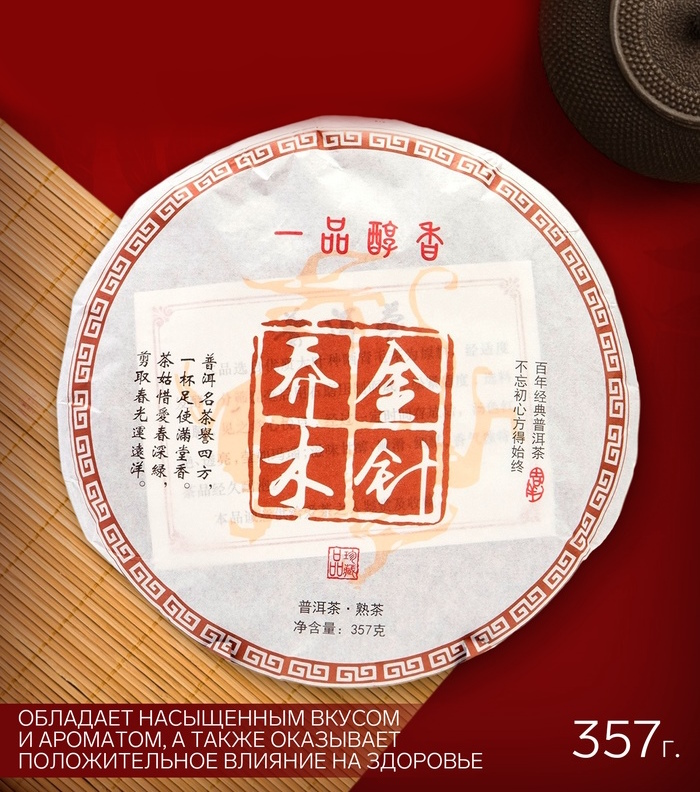 Познакомьтесь с эталонным представителем выдержанных пуэров — «Золотые иголки» (Цзинь Хао). Свое название чай получил благодаря обилию молодых чайных почек, которые после ферментации приобретают рыжевато-золотистый оттенок. Сбор 2018 года уже прошел необходимую выдержку, избавившись от «землистости» и обретя благородный, чистый профиль.