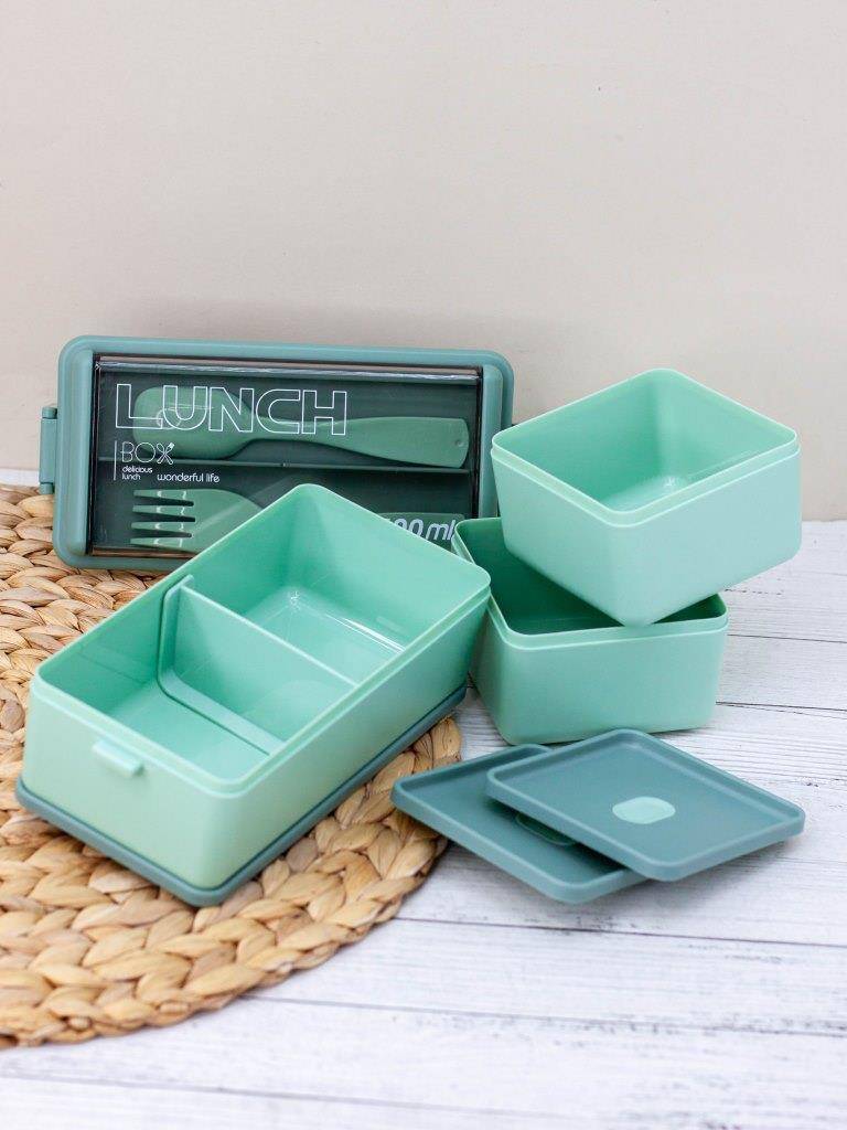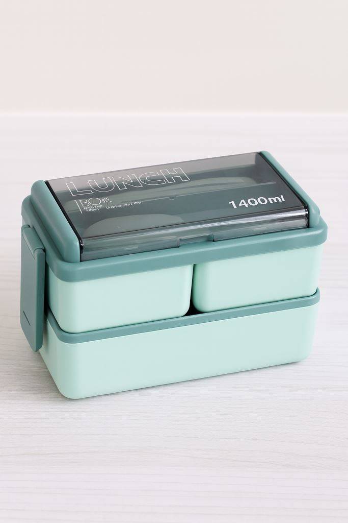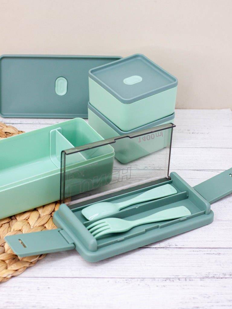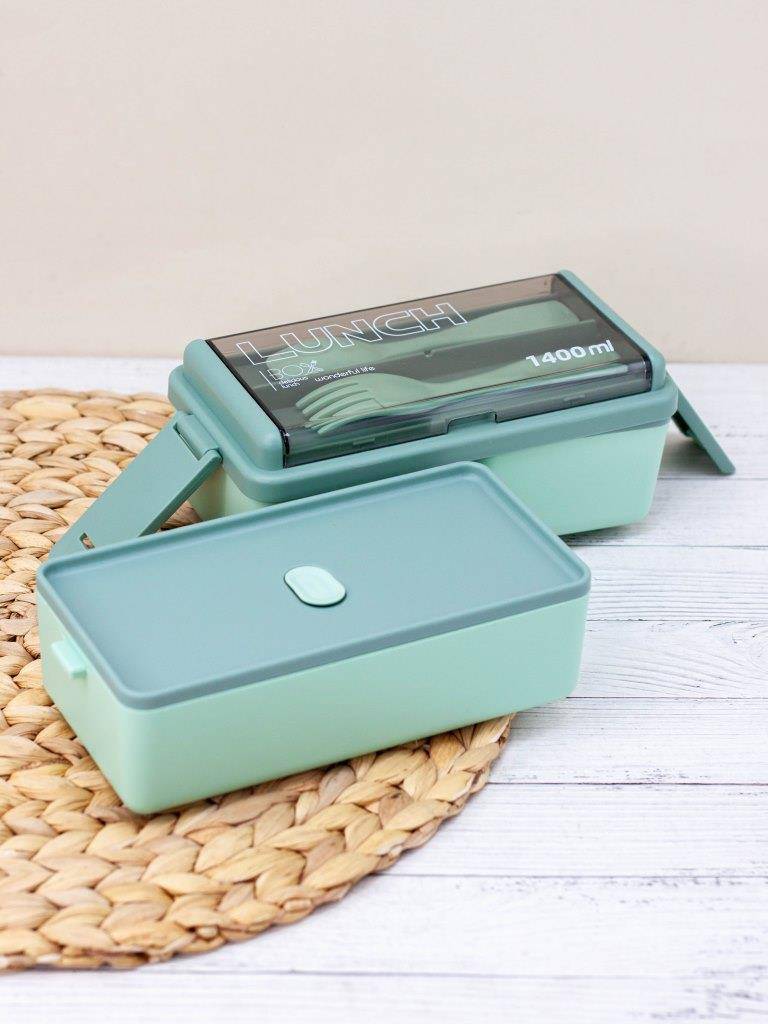 Ланчбокс «Большая жизнь» с приборами (зеленый, 1400 мл)