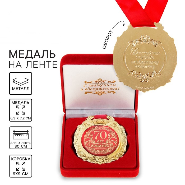 Медаль юбилейная в бархатной коробке «С юбилеем 70 лет», d=6.5 см