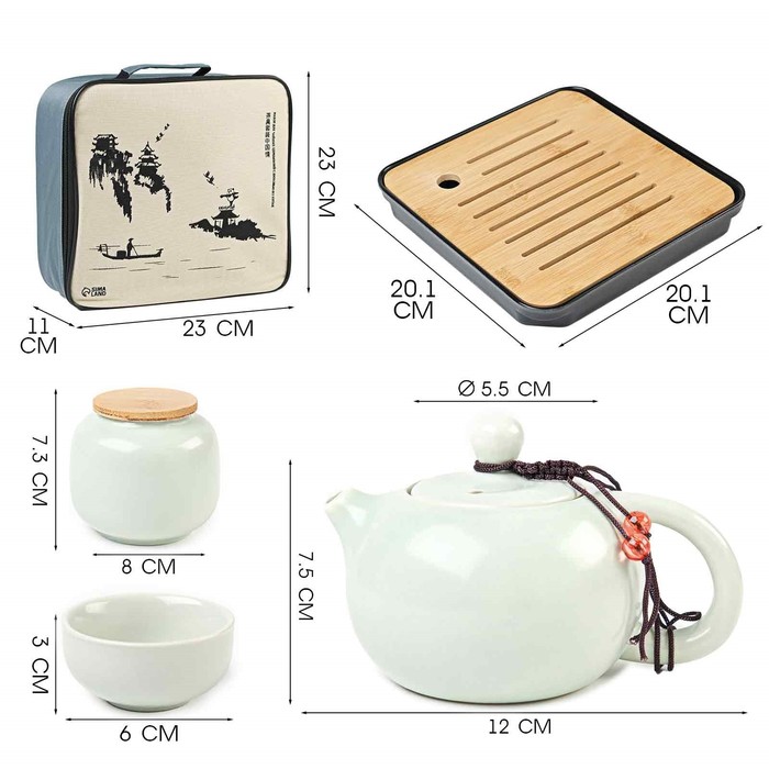 - Комплектация: Чайник (180 мл), чахай, 4 пиалы (45 мл), сито, подставка под сито, аксессуары.