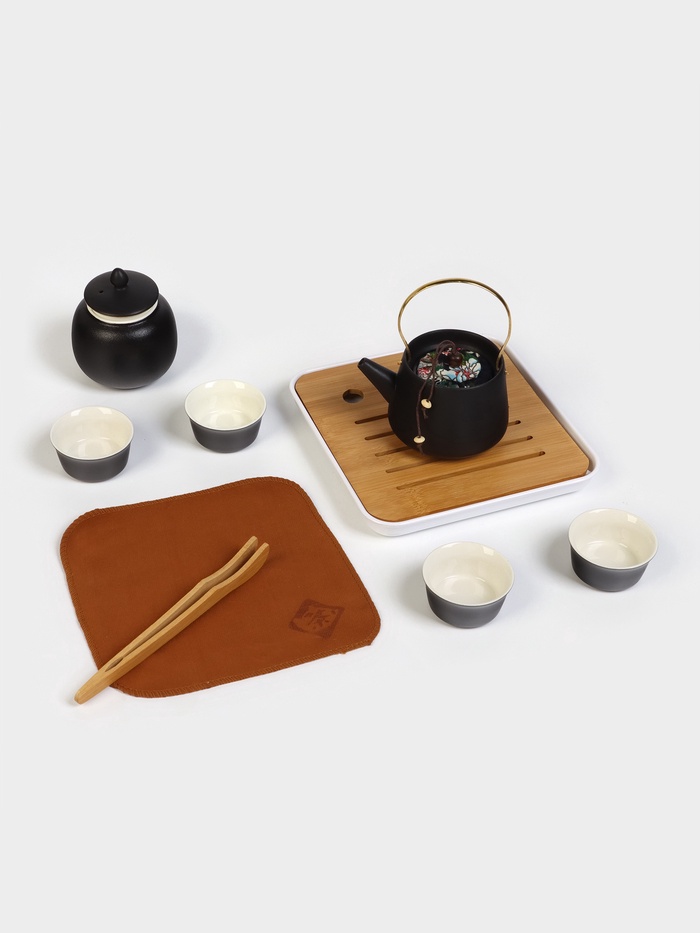 Набор для чайной церемонии «Мияма» (9 предметов) — Гармония черной керамики и горного спокойствия
