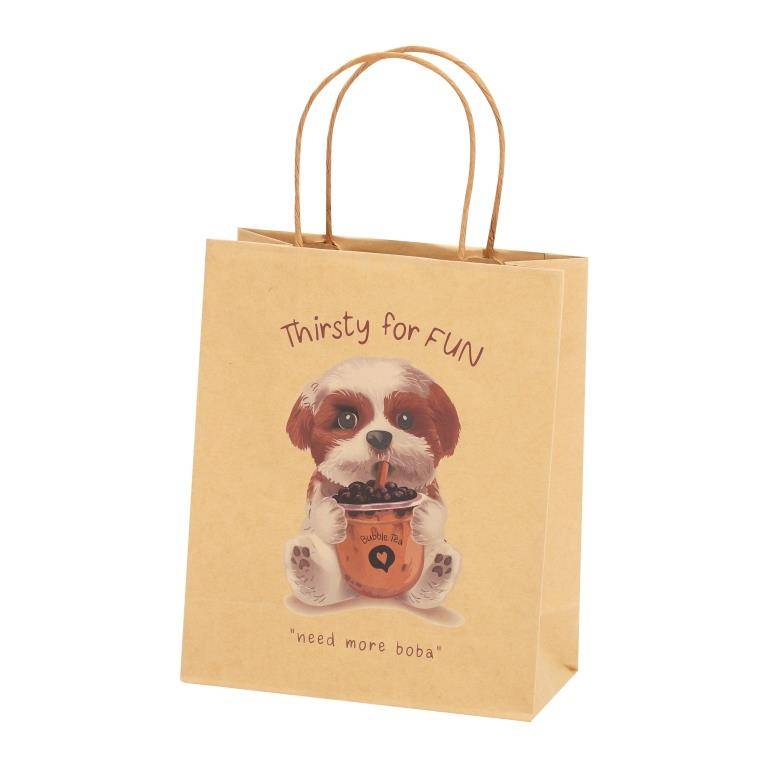 Пакет подарочный крафтовый «Собачка и бабл-ти» (KH14348-L-02)