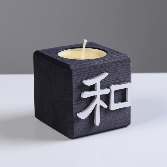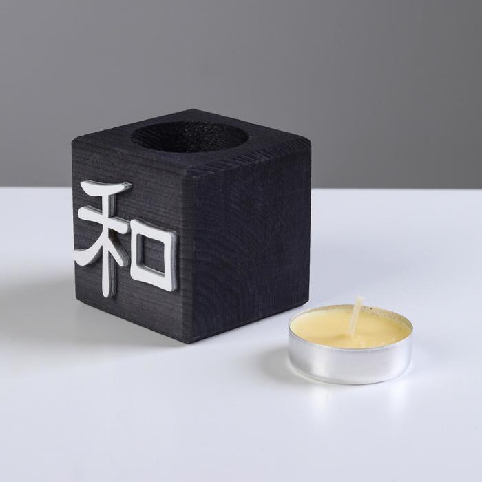 Подсвечник для чайной свечи «Куб, Иероглифы. Гармония», + свеча манго